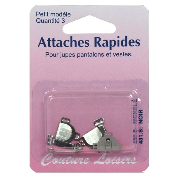 Lot de 3 agrafes nickelées pour pantalons et jupes. Taille : Small.