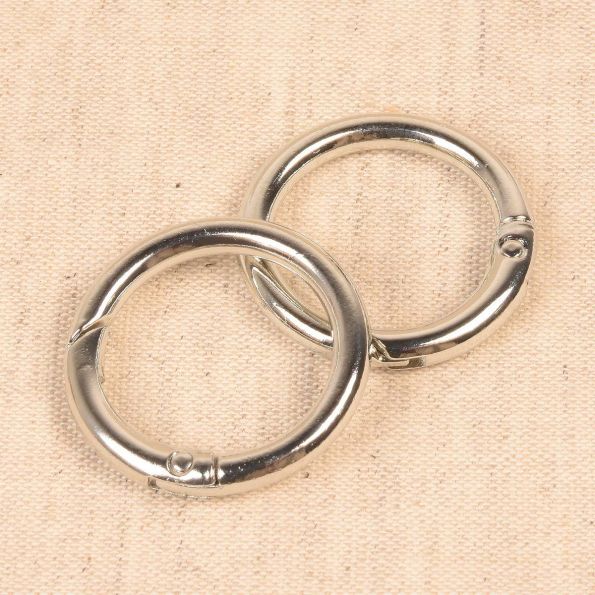 Ces anneaux pour sacs ronds sont parfaitement appropriés pour créer des sacs, des sacs à dos ou des porte-clés à la mode. Ces anneaux pour sacs sont également idéaux pour la réparation des poignées de sac ou similaires, s'il n’est pas possible de les coudre. Ils disposent d’une ouverture à mousqueton avec fermeture à ressort qui s’intègre parfaitement dans la rondeur des anneaux pour sacs.