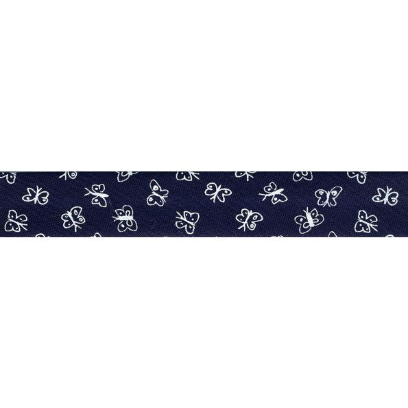 Biais replié 20 mm Bleu marine Papillons blancs x1m
