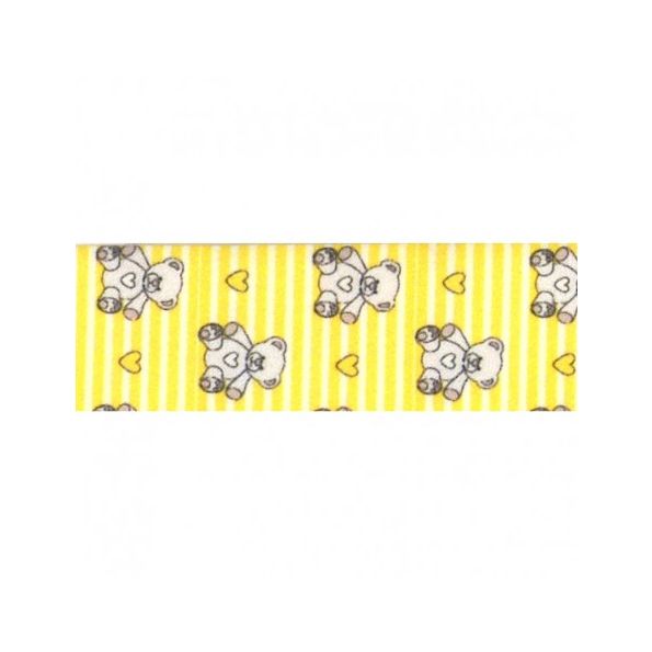 Biais replié 25 mm Oursons et coeurs sur fond rayé Jaune x1m