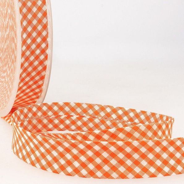 Biais tissé 20 mm Orange Petits carreaux x1m