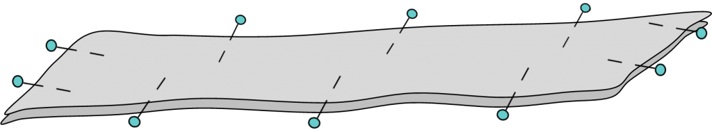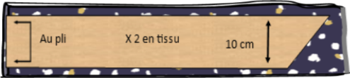 2- Plier le tissu en 2 dans le sens de la longueur puis encore en 2 dans le sens de la hauteur. Placer votre patronnage au pli du tissu. Épingler et découper en suivant le contour du patron.