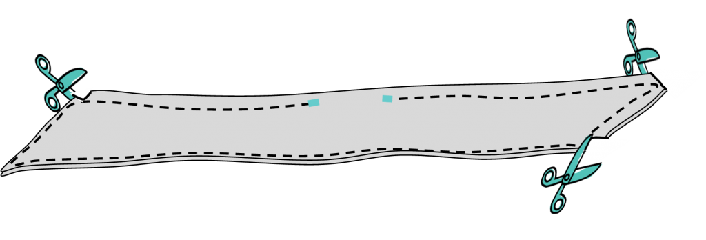 6- Retourner sur l’endroit par l’ouverture, dégager les angles et repasser minutieusement. Fermer l’ouverture par un point discret à la main.