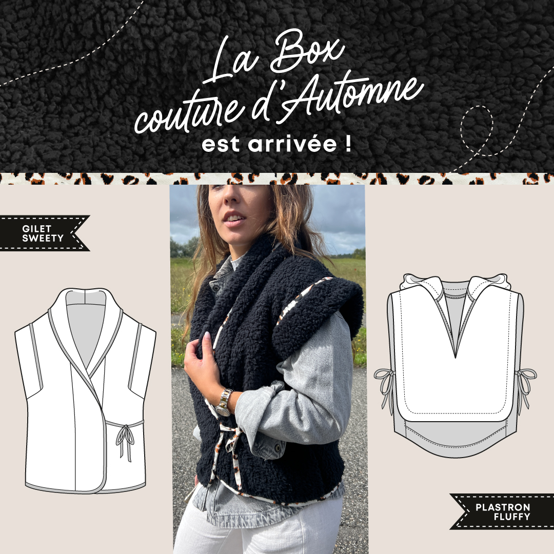 On vous propose 2 nouveaux patrons couture inédits : Le Gilet Sweety et le Plastron Fluffy.