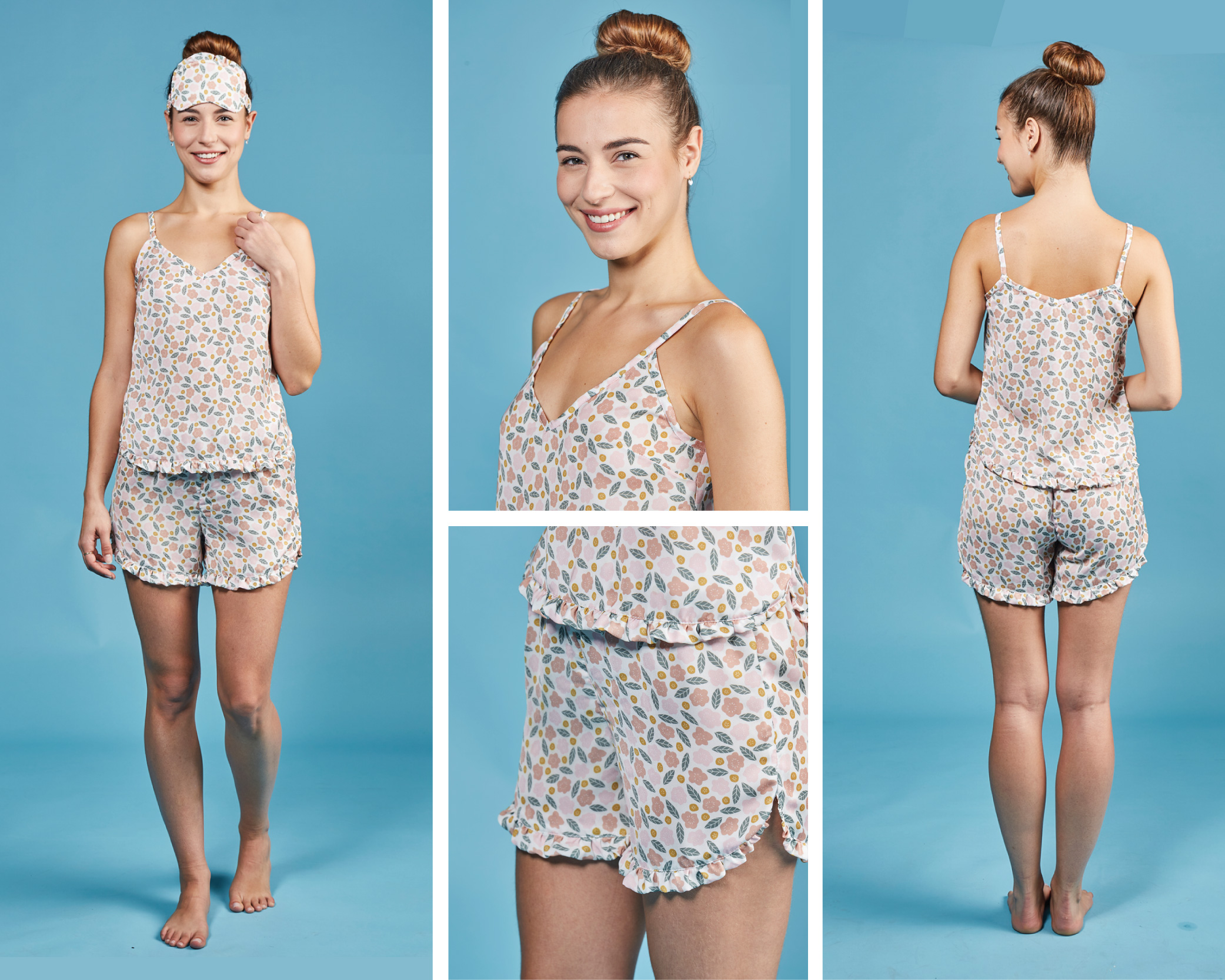 L’ensemble Verveine composé d’un top à fines bretelles et d’un short élastiqué, est l’ensemble de nuit indispensable pour faire de beaux rêves ! Avec ses adorables et délicats volants, ses formes arrondies dans le bas, cet ensemble met en valeur les courbes féminines pour un charme absolu.