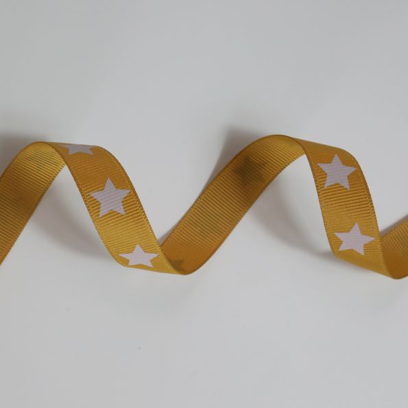 Ruban gros grain, solide et un peu raide. Légèrement côtelé et sans lisière.. Motifs étoiles. Vendu en bobine de 16 mm de largeur et d'une longueur de 4 mètres. Idéal en déco ou pour vos loisirs créatifs.
