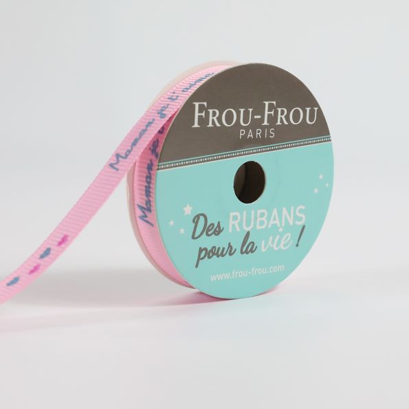 Bobinette Ruban Gros grain message Maman je t'aime Frou-Frou - 10 mm x 5 mètres