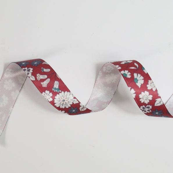 Ruban satin fleuri double face de grande qualité et infroissable. Surface très lisse et brillante. Vendu en bobine de 16 mm de largeur et d'une longueur de 5 mètres. Idéal en déco ou pour vos loisirs créatifs.