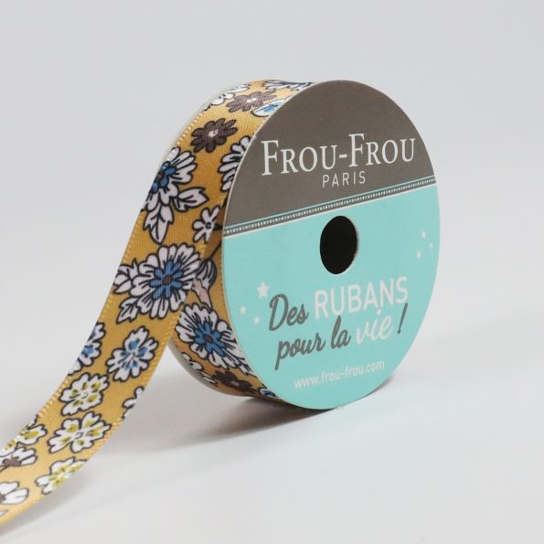 Bobinette Ruban Satin Fleuri Frou-Frou Poussière d'or - 16 mm x 5 mètres