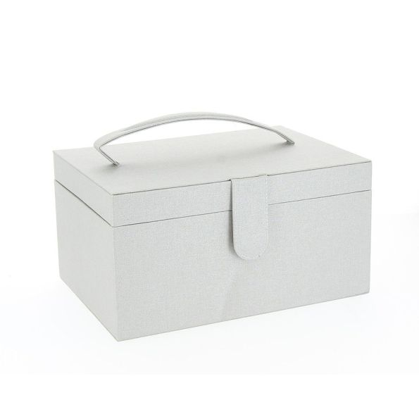 Cette jolie boite vous permettra de ranger votre nécessaire de couture. L'extérieur est recouvert d'un tissu légèremement brillant et l'intérieur est tapissé d'un tissu avec un imprimé de plumes.