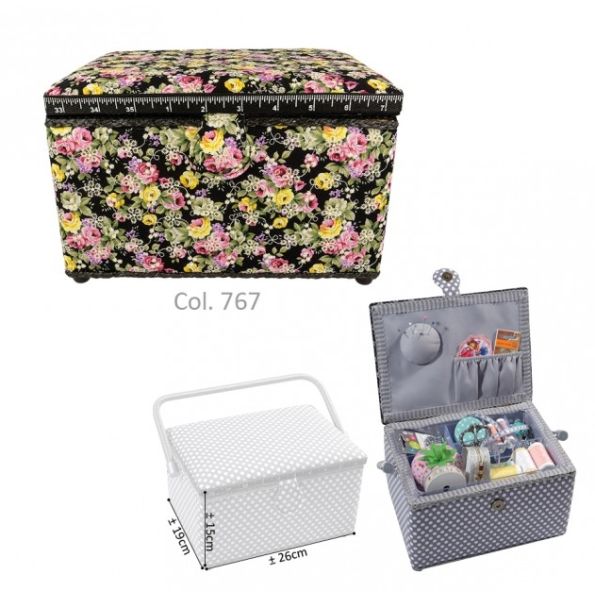 Boite à couture rectangulaire taille moyenne - Fleurs sur fond noir