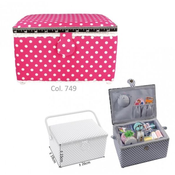 Boite à couture rectangulaire taille moyenne - Pois Fuchsia