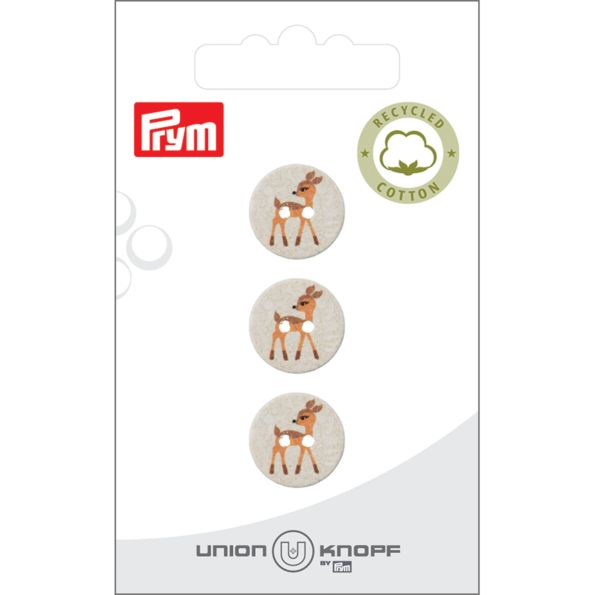 Bouton Prym Coton/Polyester recyclé Animaux 18 mm x3 - Biche