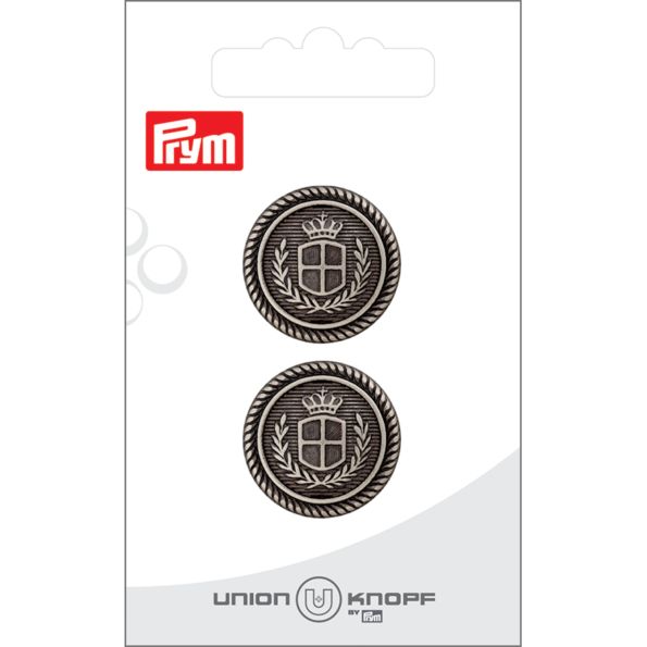 Bouton Prym Steve Métal Blason 23 mm x2 - Argent vieilli