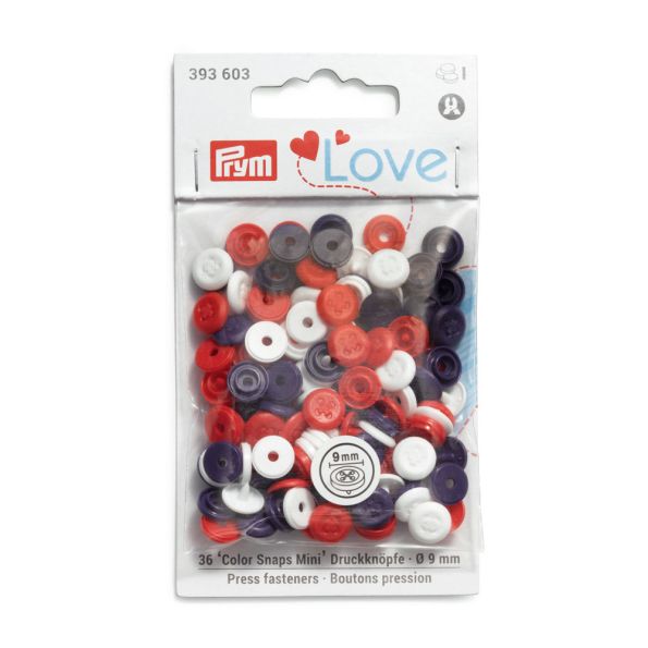 Boutons pression Prym Colors Snaps Mini Love 9mm Optique couture Rouge et bleu - Sachet 36