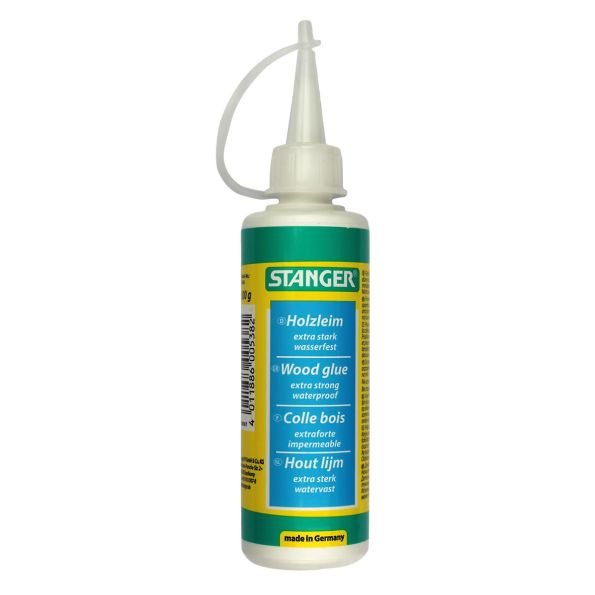 La colle à bois Stanger est une colle de dispersion de grande qualité qui permet d'obtenir un fort pouvoir adhésif lors de collages sur bois. À température ambiante, elle montre une bonne vitesse de prise, alors qu'une température élevée va sensiblement accélérer la prise. Cette colle à bois est adaptée aux travaux de collage du bois et de nombreux matériaux dérivés du bois, pour lesquels une résistance élevée à l'humidité et l'influence momentanée de l'eau est requise. La colle à bois est destinée aux collages de montage, de surfaces et de jointures de planches. L'embout d'application permet un travail propre et précis.