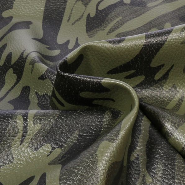 Ce coupon de tissu Simili cuir imprimé camouflage sera idéal pour la confection de sacs ou coussins. Vous pourrez également recouvrir un fauteuil, un tabouret, etc.