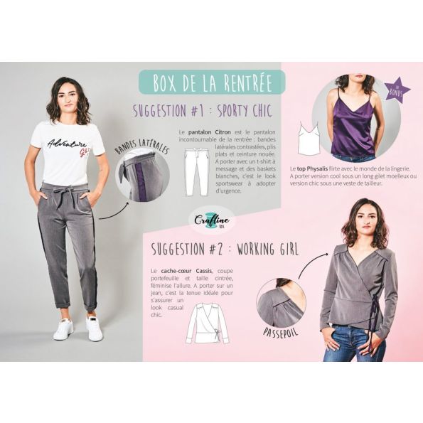 - Nom : La Box Couture Pantalon Citron, Cache-cœur Cassis et Top Physalis