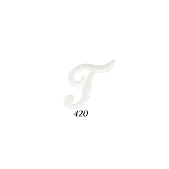 Ecusson Thermocollant Lettre Calligraphie Anglaise "T" Blanche