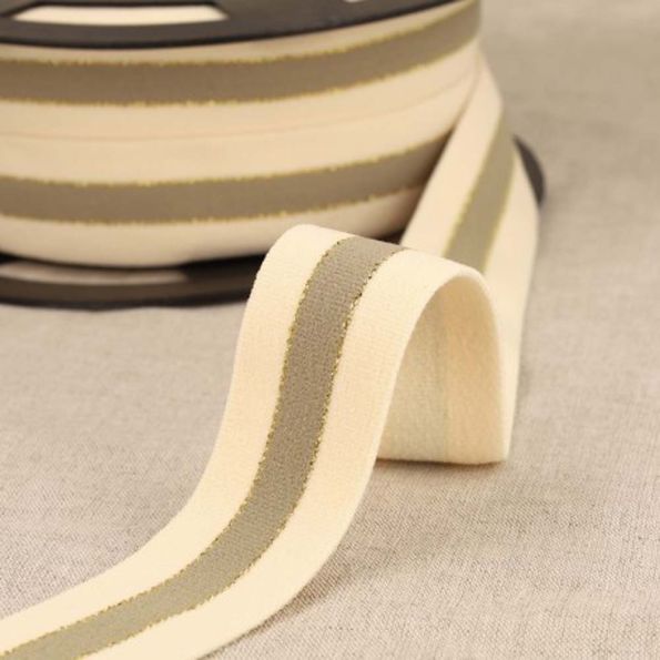 Elastique Plat bicolore lisière Or 32 mm Ecru et beige x1m