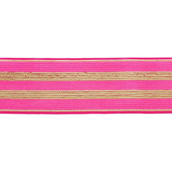 Élastique Plat Lurex Fuchsia rayures or 30 mm x1m