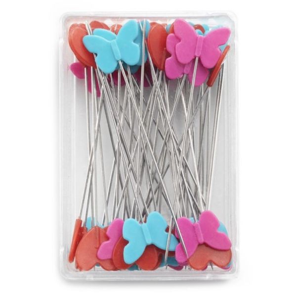 - Longues épingles avec têtes en plastique plates en forme de cœur ou papillon