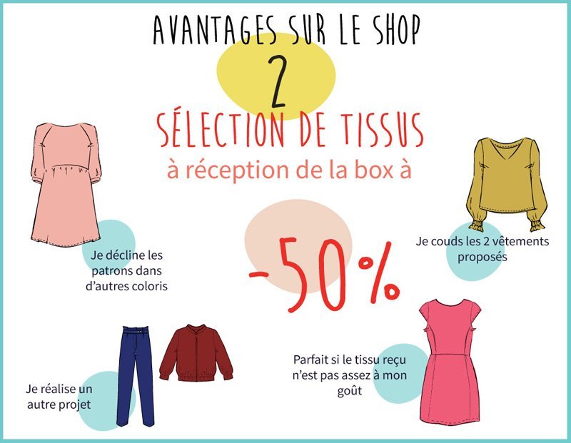 2 - Une sélection de tissus à prix cassé à -50% à réception de chaque box.