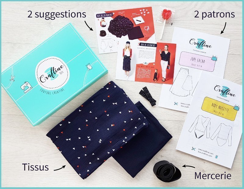 La Craftine Box est une box de couture surprise que vous recevrez tous les deux mois directement dans votre boîte au lettre. Chaque box contient tout ce dont vous avez besoin pour créer un vêtement de femme complet à partir de deux patrons de couture.