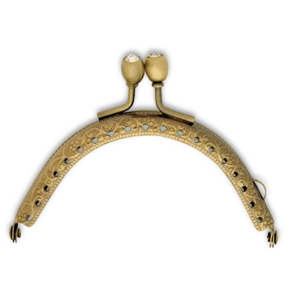 Avec sa fermeture en laiton antique, dotée de deux boules incrustées de pierres de strass au sommet , ce fermoir est adapté pour les portes-monnaies, les étuis ou les sacs à main pour enfants ou festifs. Le pré-perforage de la structure en métal facilite la couture sur le tissu et donne un résultat plus propre. Ce petit fermoir de forme semi-circulaire et en métal brillant argent fera craquer à coup sur, d'autant qu'il est fourni avec un patron de pose.