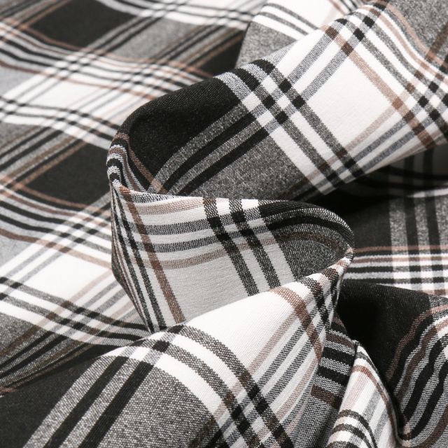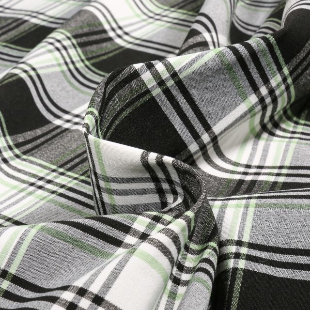 3. Tissu Jacquard Carreaux Vichy noir et blanc sur fond Blanc - Par 10 cm