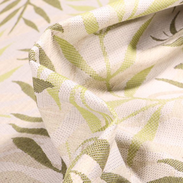 2. Tissu Toile jacquard Fougère sur fond Blanc cassé - Par 10 cm