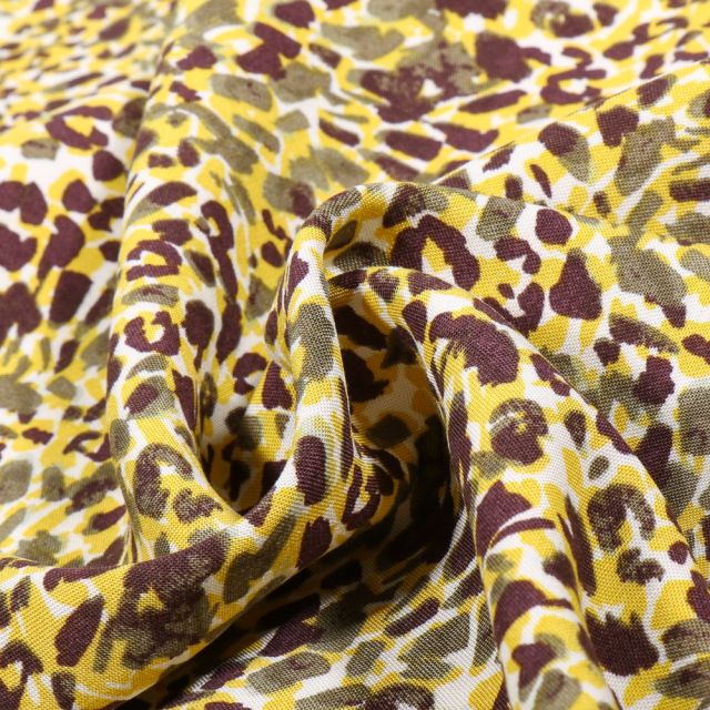 Prix Spécial 2,24 € Prix normal 2,49 €Tissu Coton Robert Kaufman Gustav Klimt galets fleuris sur fond Moutarde - Par 10 cm