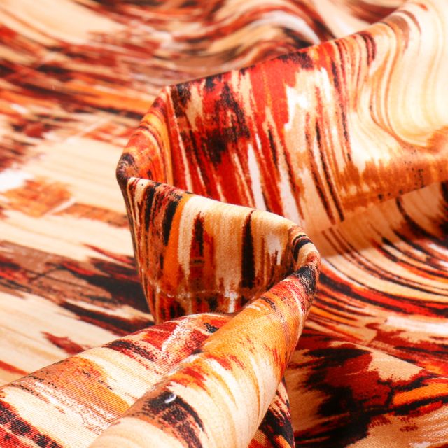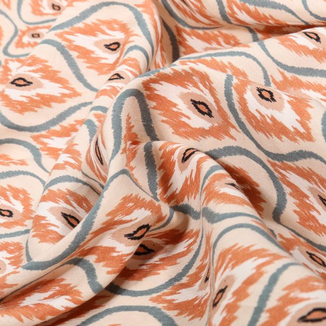 Prix Spécial 2,42 € Prix normal 2,69 €Tissu Jacquard relief velours Emir sur fond Orange - Par 10 cm
