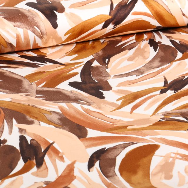Prix Spécial 2,33 € Prix normal 2,59 €Tissu Jacquard relief velours Emir beige sur fond Marron - Par 10 cm