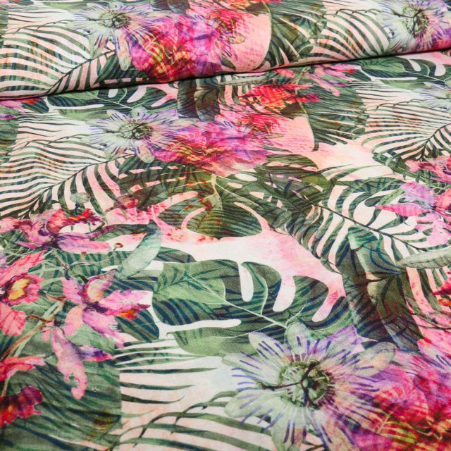Prix Spécial 2,06 € Prix normal 2,29 €Tissu Coton imprimé Frou-Frou Pollen sur fond Rose clair - Par 10 cm