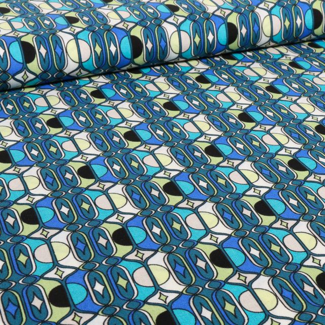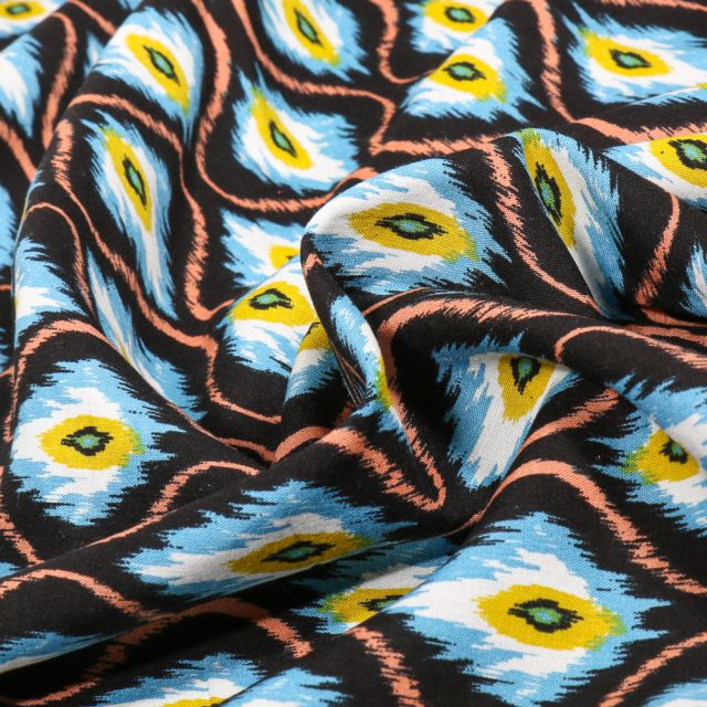 Prix Spécial 2,24 € Prix normal 2,49 €Tissu Coton Robert Kaufman Gustav Klimt galets fleuris sur fond Multicolore - Par 10 cm