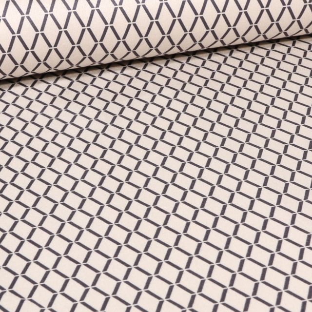 Prix Spécial 2,06 € Prix normal 2,29 €Tissu Toile jacquard Janis gris sur fond Blanc - Par 10 cm