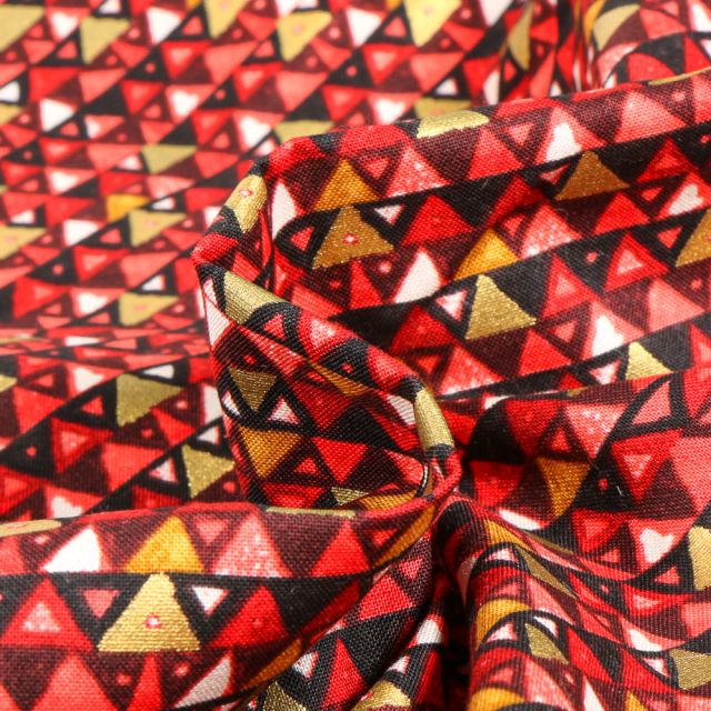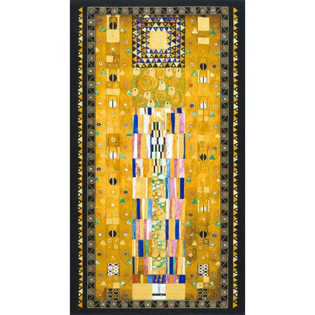Prix Spécial 2,24 € Prix normal 2,49 €Tissu Coton Robert Kaufman Gustav Klimt rectangle rouge sur fond Or - Par 10 cm