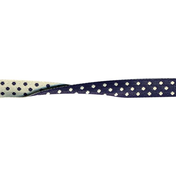 Galon 10 mm Bleu marine Pois Recto Verso Blanc x1m
