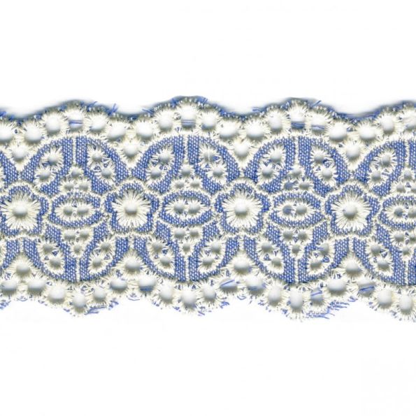 Galon Broderie Fleurs 54 mm Bleu x1m