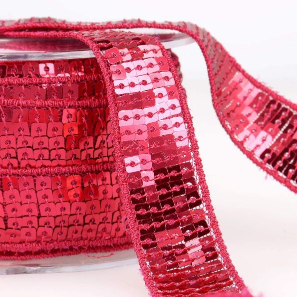 Galon Paillettes 22 mm Rose fuchsia Paillettes x1m
