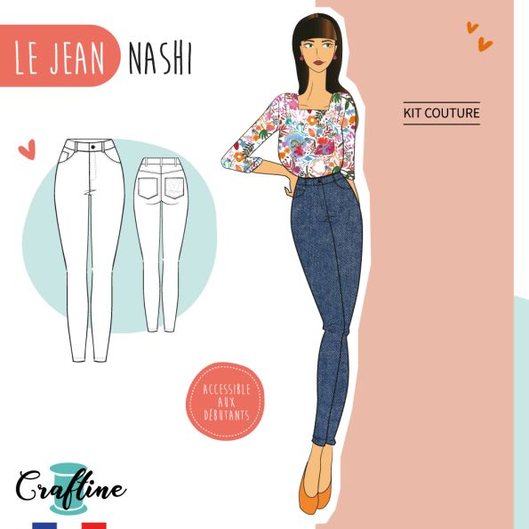 Le kit couture clé en main du jean Nashi contient tout le nécessaire pour réaliser ce jean slim de la taille 34 à 48. Il est accessible même aux débutants.