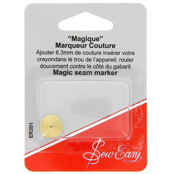 Essayez le marqueur couture magique Sew Easy. Elargissez votre ouvrage de 6,3 mm en positionnant la pointe du stylo dans le trou du marqueur de couture et en roulant doucement contre le coté du gabarit.