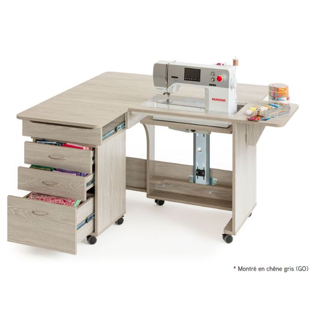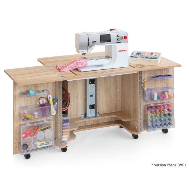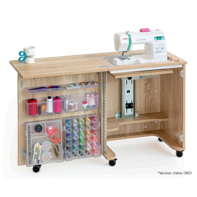 Organisez facilement votre espace de travail avec nos meubles de couture spécialement conçus pour les couturières. Nos tables à coudre permettent de ranger votre machine à coudre, surjeteuse et tous vos accessoires. Grâce à leurs multiples compartiments et montés sur roulettes, vous pouvez garder un espace de travail propre et ordonné en un rien de temps. Transformez votre atelier et profitez d'un espace de couture toujours bien organisé et fonctionnel.