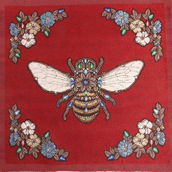 Panneau carré jacquard 48x48cm Abeille royale sur fond Rouge