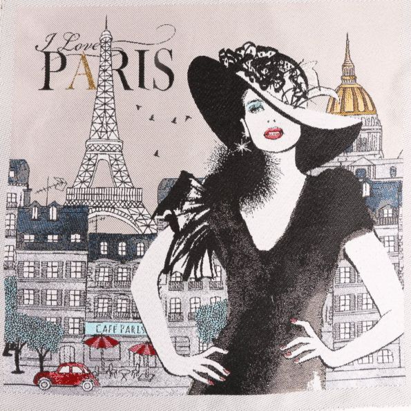 Panneau carré jacquard 48x48cm Madame Paris sur fond Naturel