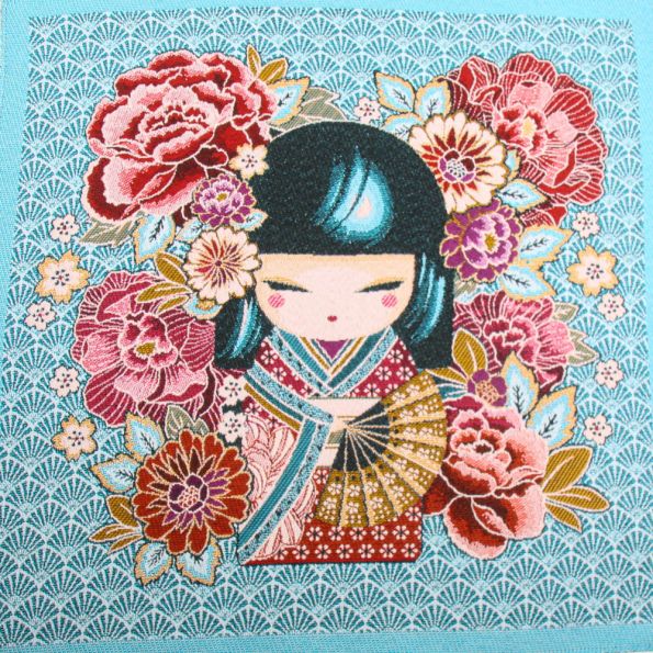 Panneau carré jacquard 48x48cm Mina sur fond Turquoise