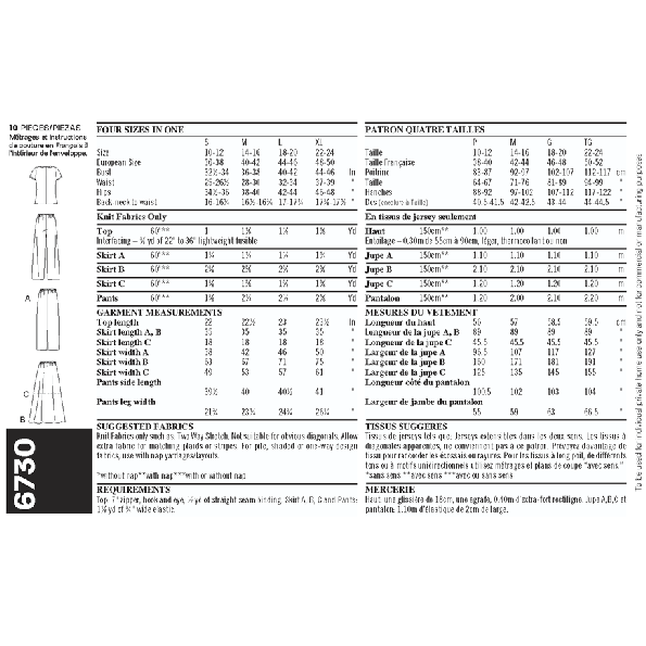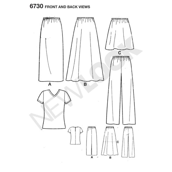 - Nom : Patron New Look 6730 Jupe, Pantalon, Tee-Shirt