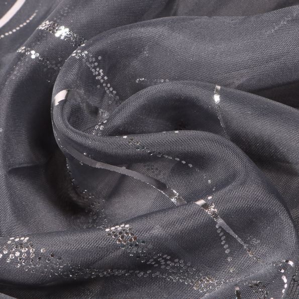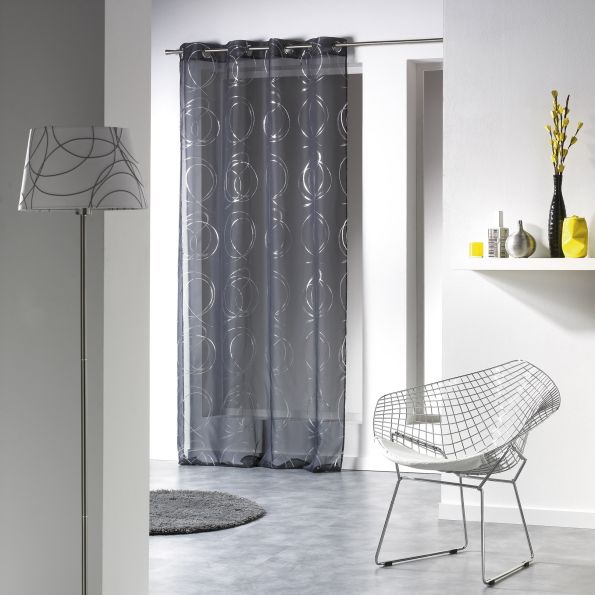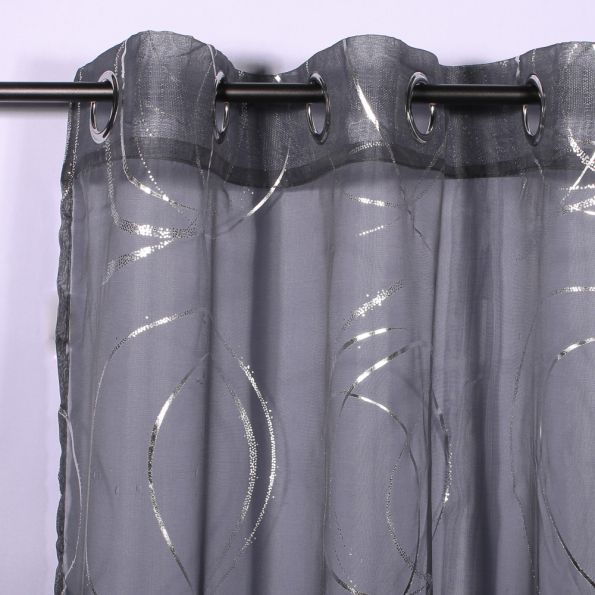 Rideau Voilage Imprimé Argent Brouage Anthracite - 140 x 240 cm
