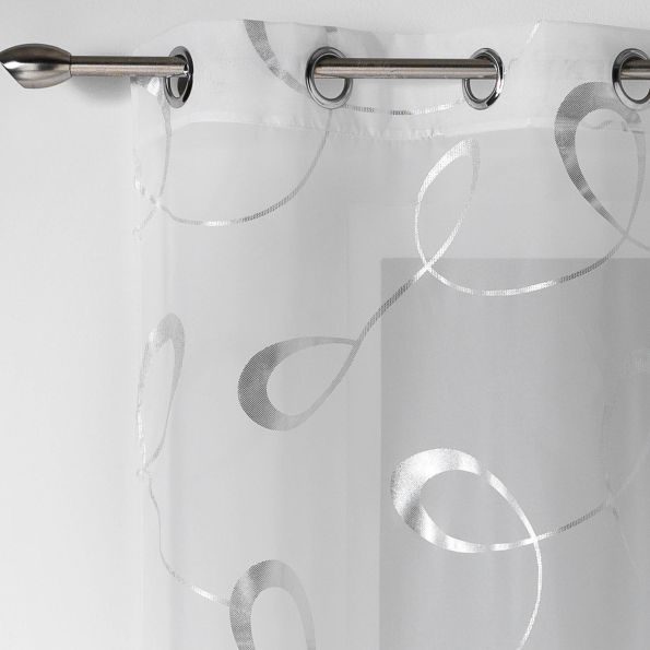 Rideau Voilage à oeillets Craftine 140 x 240 cm Imprimé Argent Castelnou Blanc